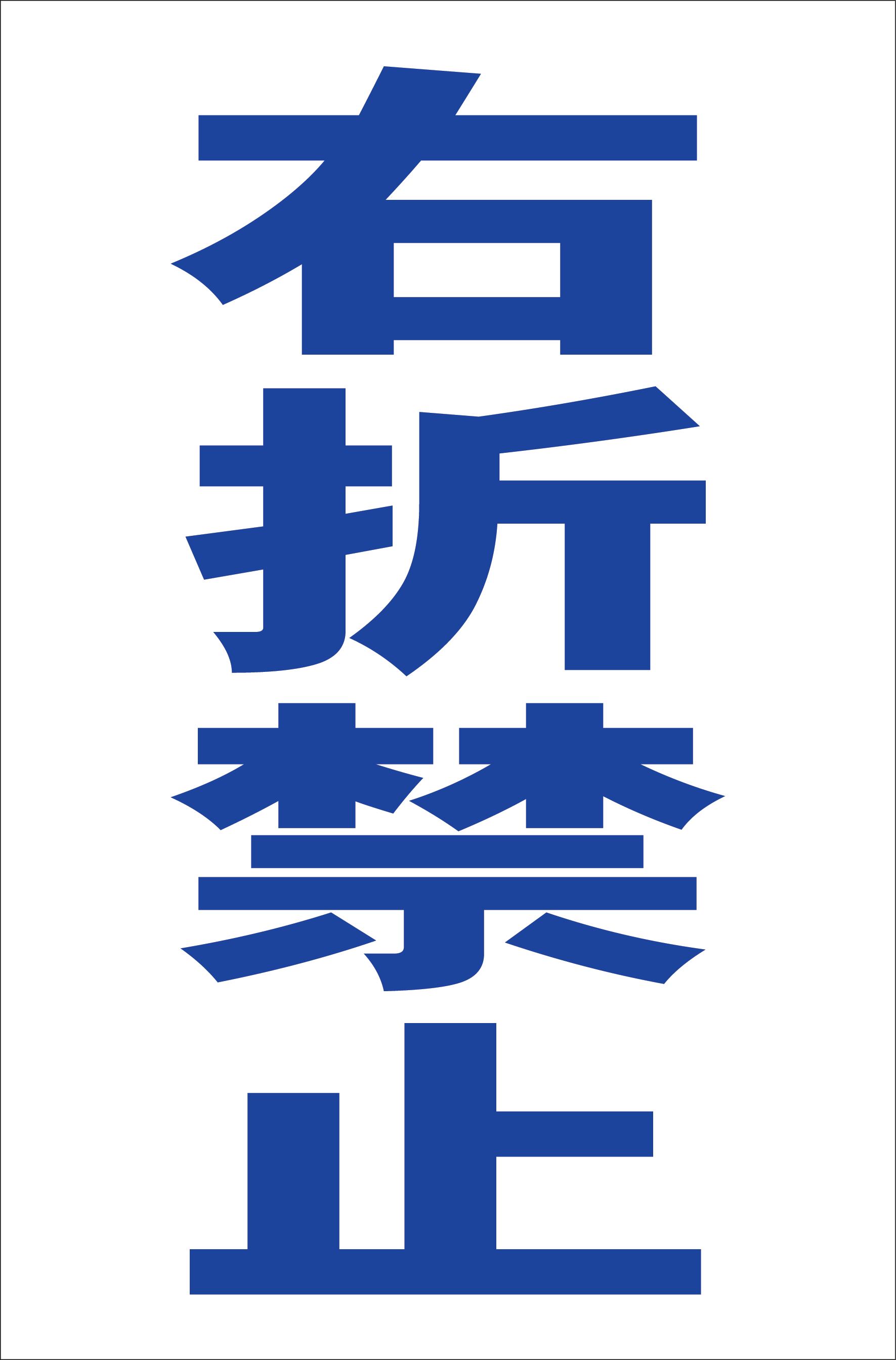 シンプル縦型看板 「右折禁止(青)」駐車場 屋外可