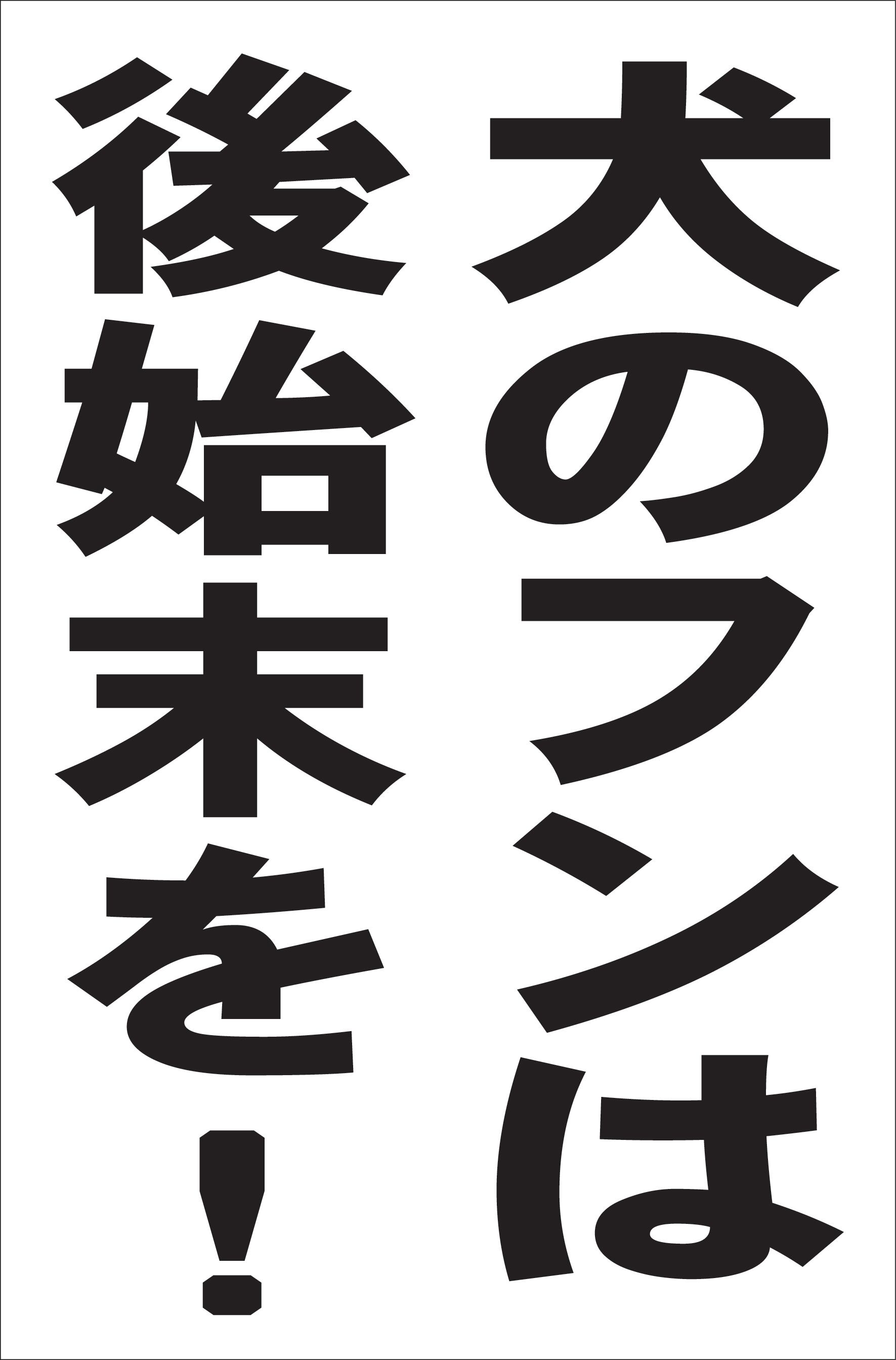 シンプル縦型看板 「犬のフンは後始末を!(黒)」駐車場 屋外可