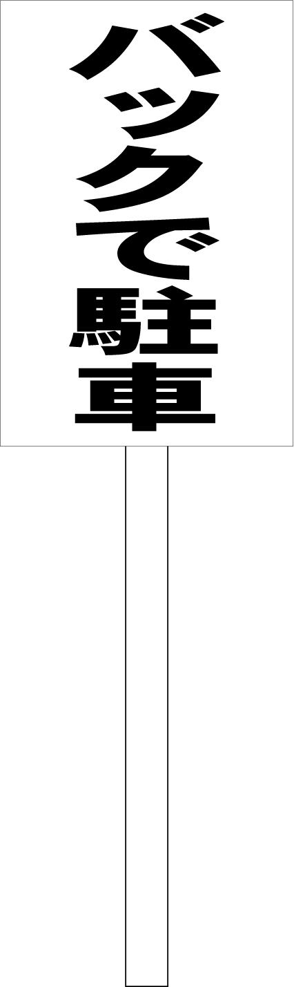 シンプル立札看板 「バックで駐車(黒)」駐車場 屋外可(面板 約H45.5cmxW30cm)全長1m