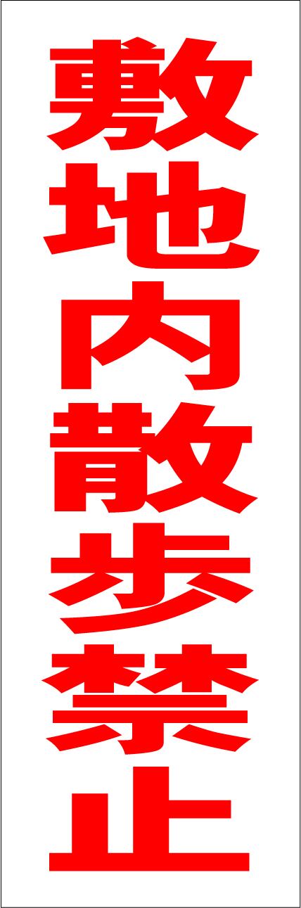 シンプル短冊型看板「敷地内散歩禁止(赤)」【駐車場】屋外可
