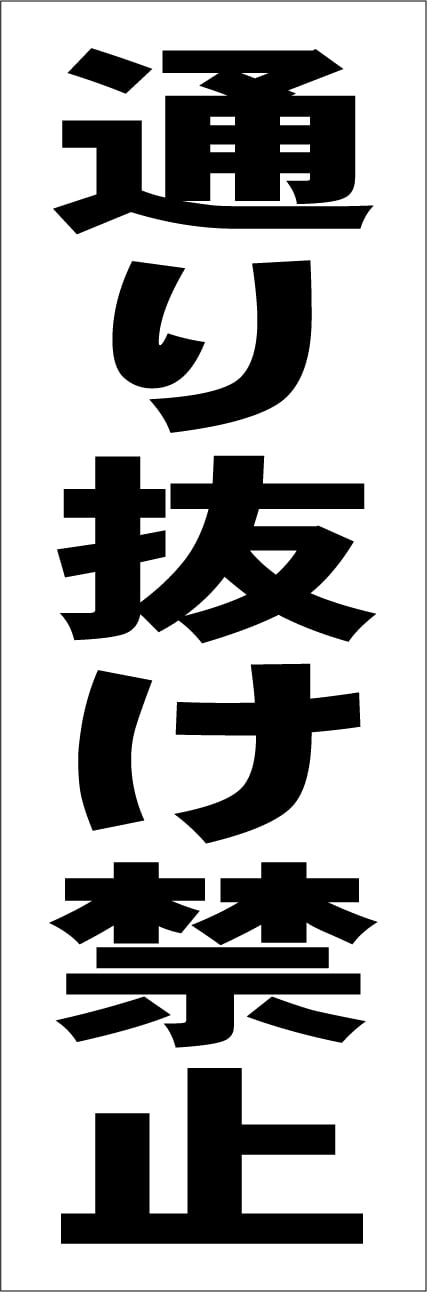 シンプル短冊型看板ロング「通り抜け禁止(黒)」【駐車場】屋外可